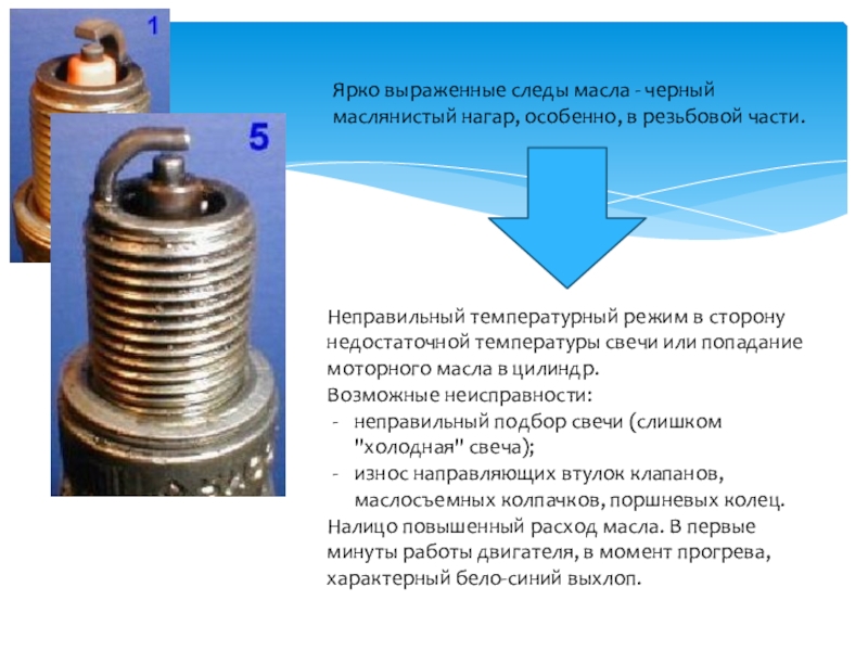 Неправильный температурный режим в сторону недостаточной температуры свечи или попадание моторного масла в цилиндр.