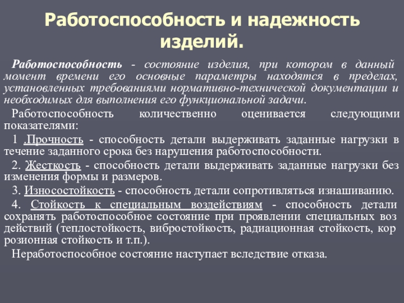 1 .Прочность - способность детали выдерживать заданные нагрузки в течение заданного срока без нарушения работоспособности.