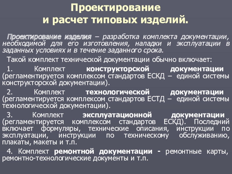 1. Комплект конструкторской документации (регламентируется комплексом стандартов ЕСКД – единой системы конструкторской документации).