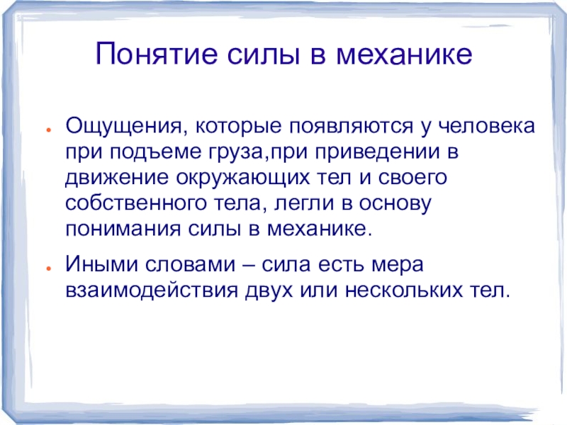 приведении в движение окружающих тел и своего собственного тела, легли в основу понимания силы в механике.