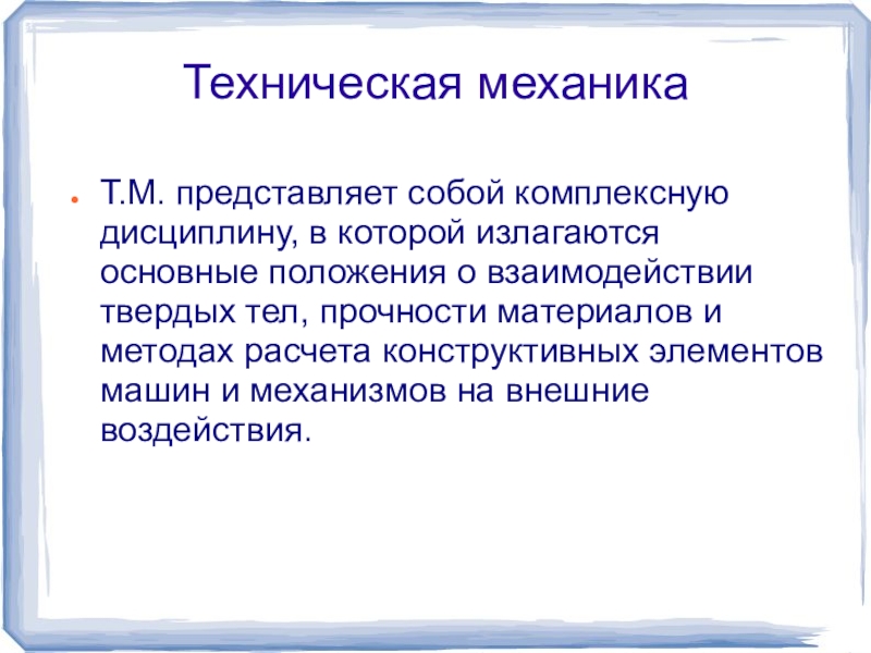 о взаимодействии твердых тел, прочности материалов и методах расчета конструктивных элементов машин и механизмов на внешние воздействия.