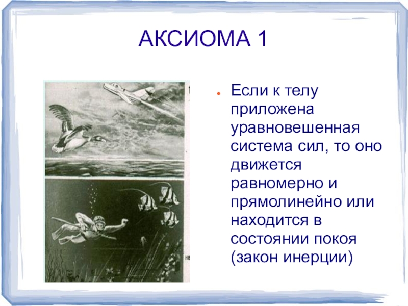равномерно и прямолинейно или находится в состоянии покоя (закон инерции)