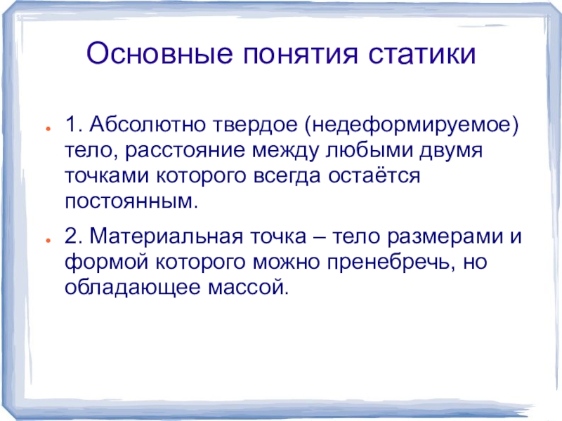 1. Абсолютно твердое (недеформируемое) тело, расстояние между любыми двумя