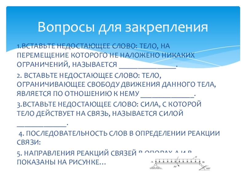 Опорами называются устройства, соединяющие сооружение с его основанием и налагающие ограничения на его перемещения.