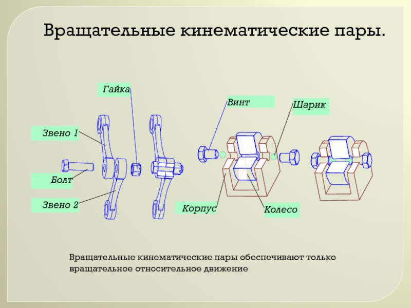 Сочленения, допускающие пространственное относительное движение называются пространственными кинематическими парами.
