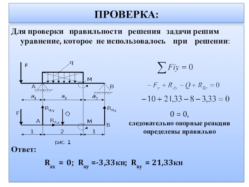 Rах = 0; Rаy =-3,33кн; Rву = 21,33кн