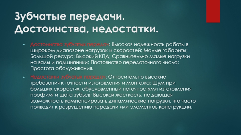 Слайд 4Зубчатые передачи. Достоинства, недостатки.