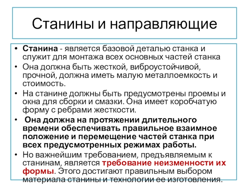 Она должна на протяжении длительного времени обеспечивать правильное взаимное положение и перемещение частей станка при всех предусмотренных режимах работы.