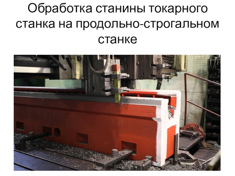Слайд 3Обработка станины токарного станка на продольно-строгальном станке