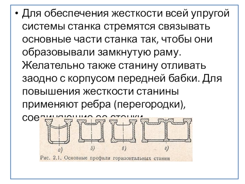 Слайд 5Для обеспечения жесткости всей упругой системы станка стремятся связывать основные части