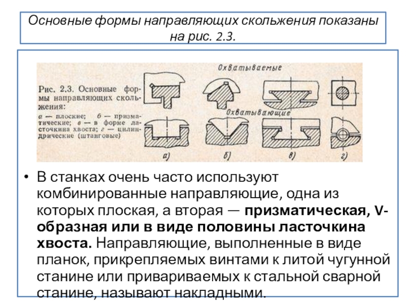 Слайд 10Основные формы направляющих скольжения показаны на рис. 2.3.