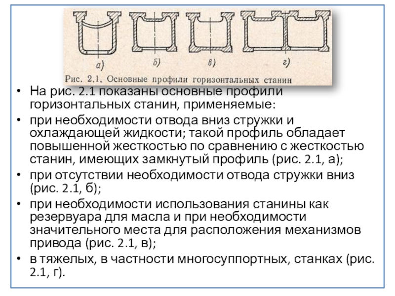 На рис. 2.1 показаны основные профили горизонтальных станин, применяемые: