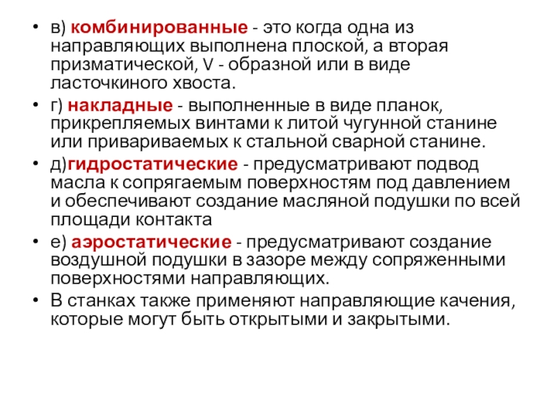 Слайд 9в) комбинированные - это когда одна из направляющих выполнена плоской, а вторая призматической,