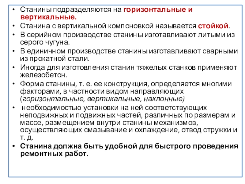 Слайд 4Станины подразделяются на горизонтальные и вертикальные.