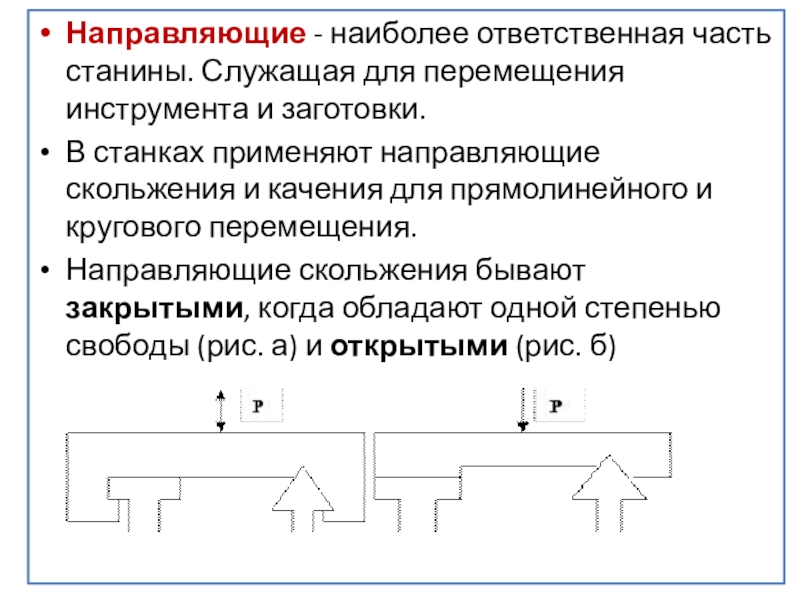 Слайд 7Направляющие - наиболее ответственная часть станины. Служащая для перемещения инструмента и заготовки.