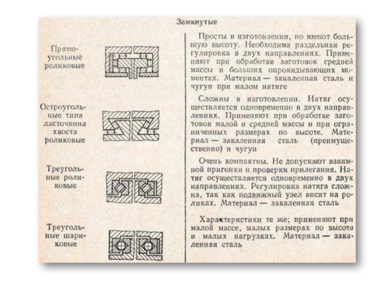 В станках также применяют направляющие качения, которые могут быть открытыми и закрытыми.