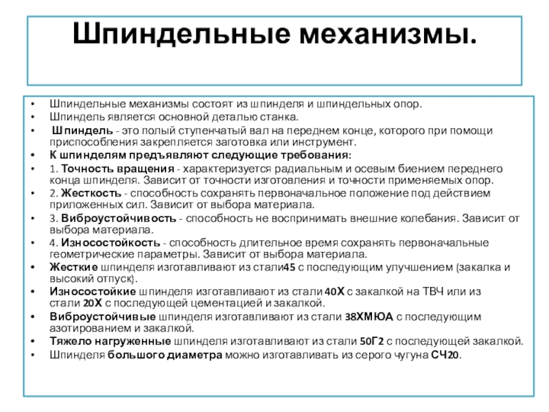 Шпиндельные механизмы состоят из шпинделя и шпиндельных опор.