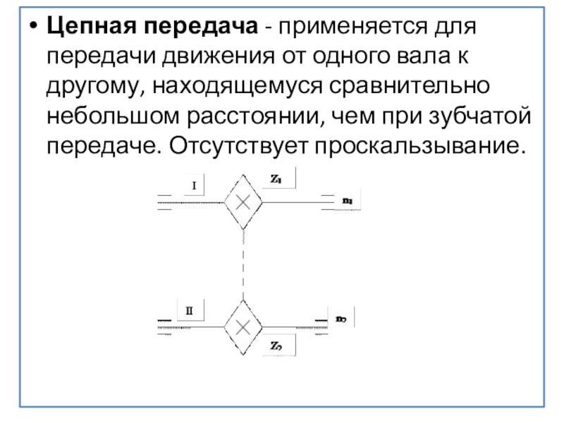 Слайд 18Цепная передача - применяется для передачи движения от одного вала к другому,