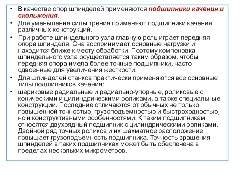 Слайд 14В качестве опор шпинделей применяются подшипники качения и скольжения.