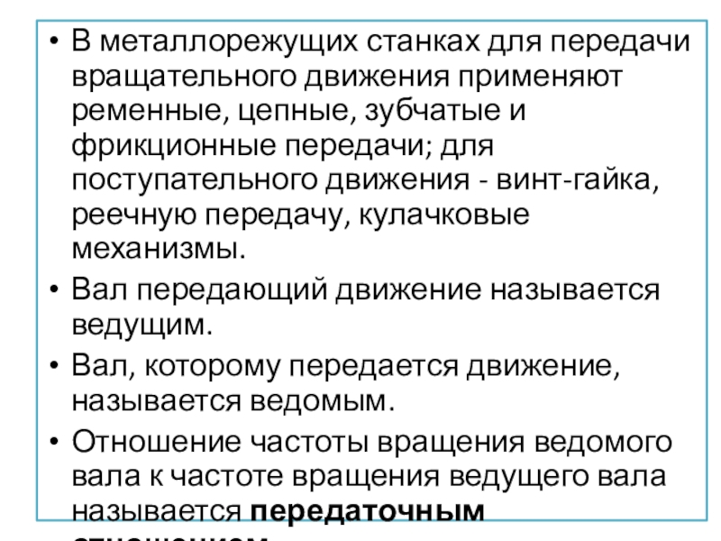 Слайд 16В металлорежущих станках для передачи вращательного движения применяют ременные, цепные, зубчатые
