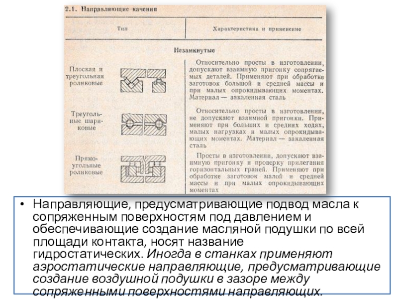 Слайд 11Направляющие, предусматривающие подвод масла к сопряженным поверхностям под давлением и обеспечивающие
