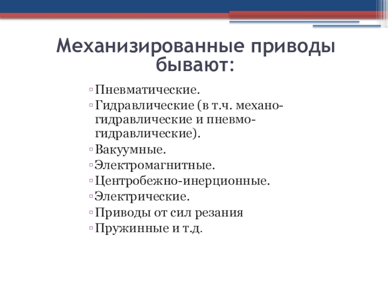 Гидравлические (в т.ч. механо-гидравлические и пневмо-гидравлические).
