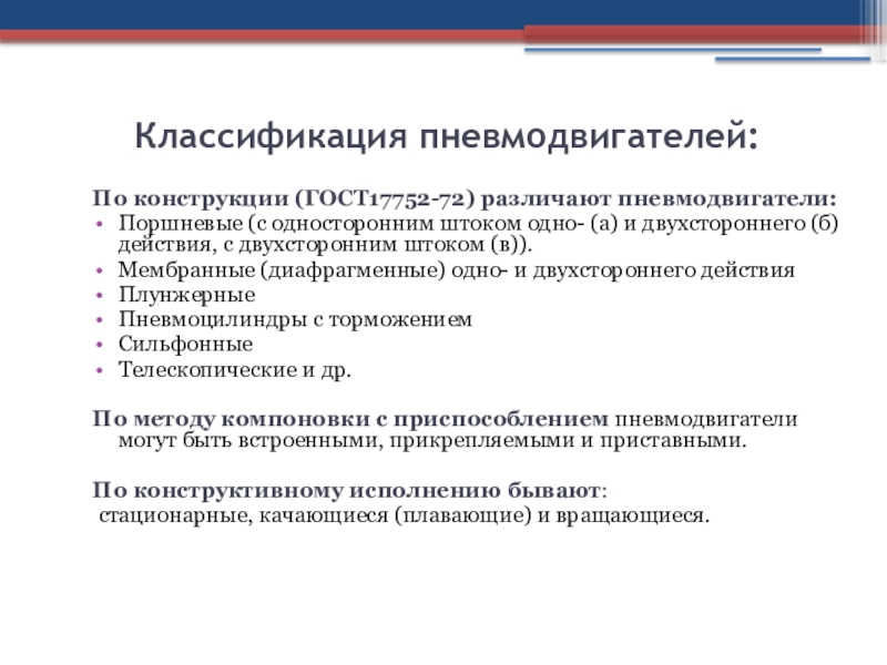 По конструкции (ГОСТ17752-72) различают пневмодвигатели: