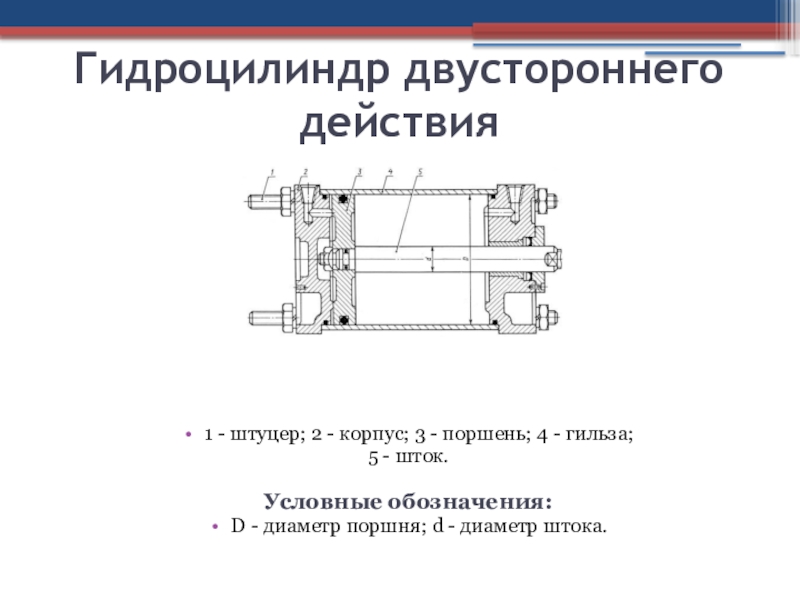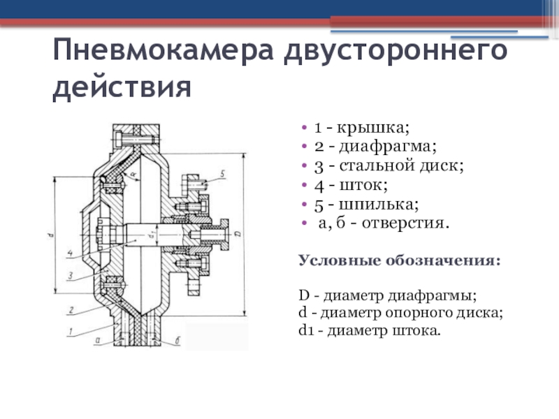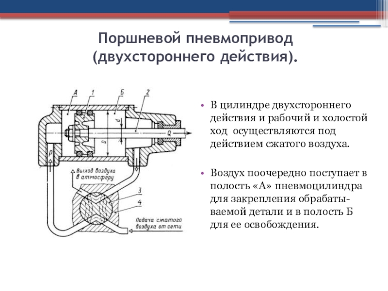 Слайд 8Поршневой пневмопривод (двухстороннего действия).