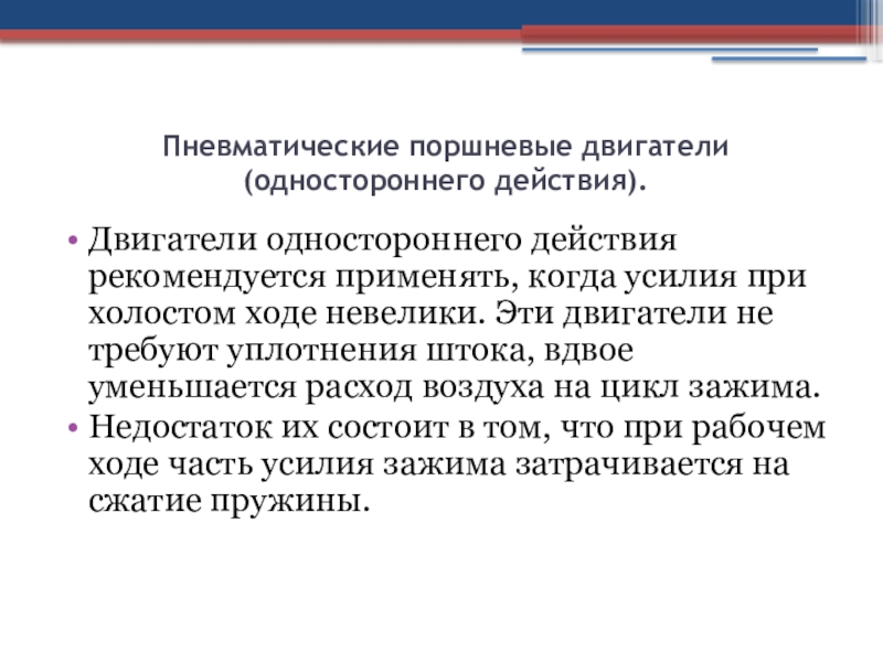 Слайд 7Пневматические поршневые двигатели (одностороннего действия).