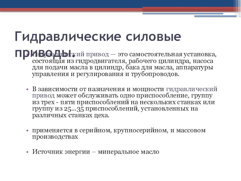 Гидравлический привод — это самостоятельная установка, состоящая из гидродвигателя,