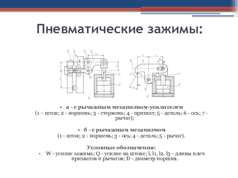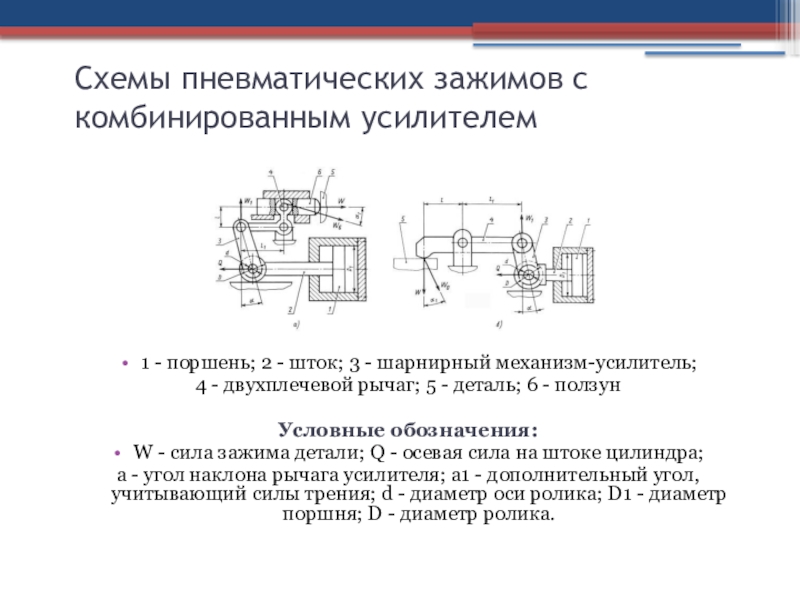 Слайд 21Схемы пневматических зажимов с комбинированным усилителем