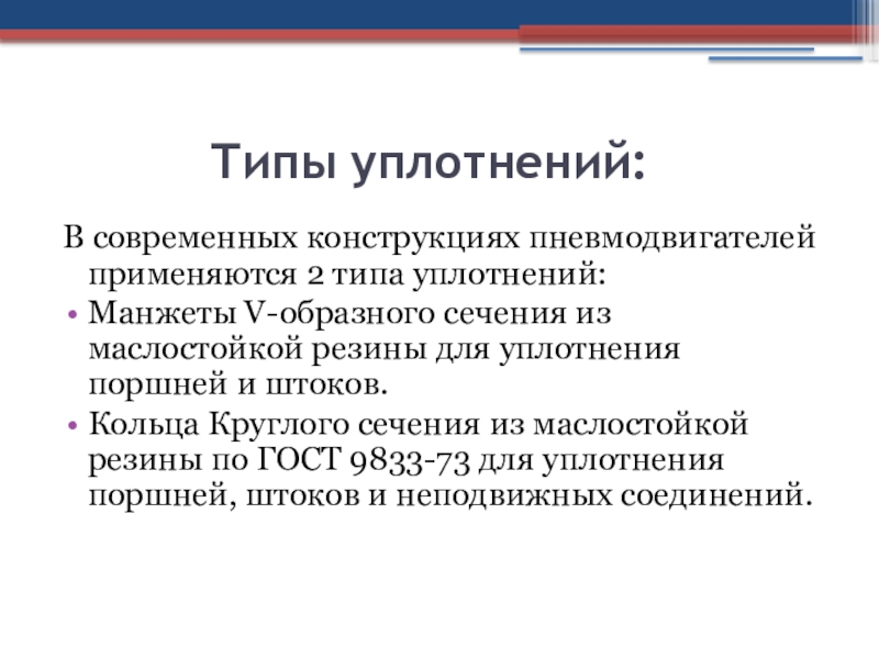 В современных конструкциях пневмодвигателей применяются 2 типа уплотнений: