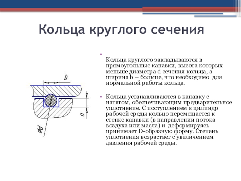 меньше диаметра d сечения кольца, а ширина b – больше, что необходимо для нормальной работы кольца.