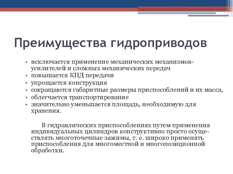 В гидравлических приспособлениях путем применения индивидуальных цилиндров конструктивно просто осуще-ствлять многоточечные зажимы, т. е. широко применять приспособления для многоместной и многопозиционной обработки.