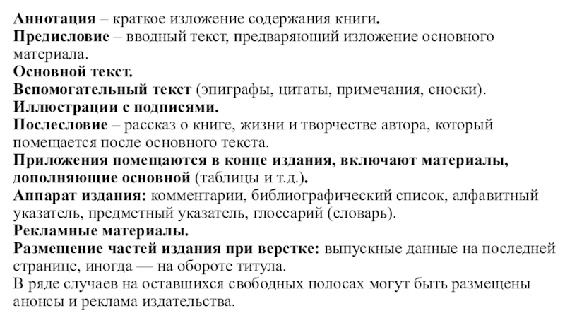 Аппарат издания: комментарии, библиографический список, алфавитный указатель, предметный указатель, глоссарий (словарь).