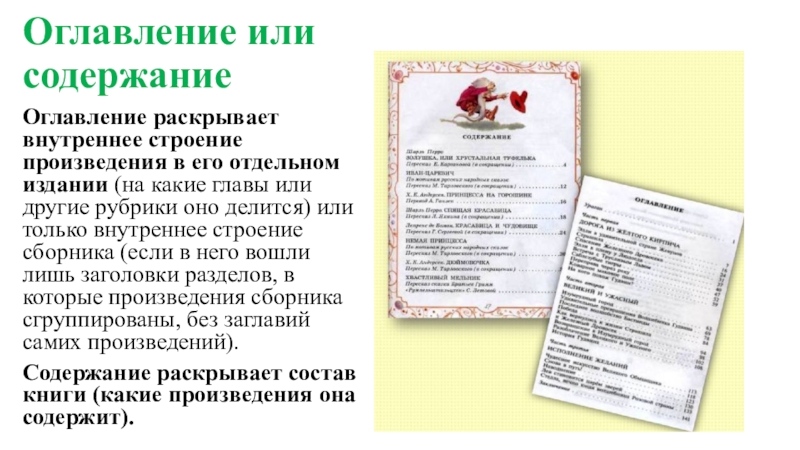 Содержание раскрывает состав книги (какие произведения она содержит).