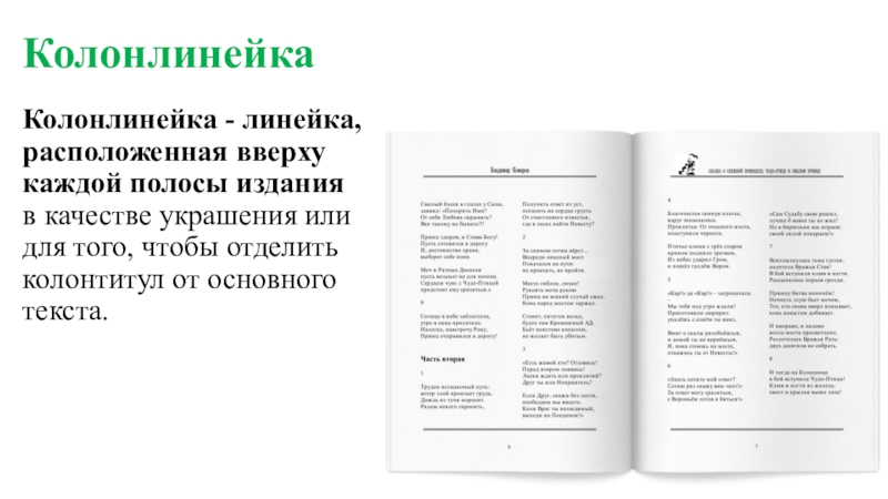 Колонлинейка - линейка, расположенная вверху каждой полосы издания в качестве