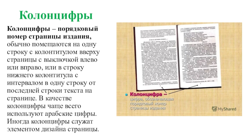 Колонцифры – порядковый номер страницы издания, обычно помещаются на одну