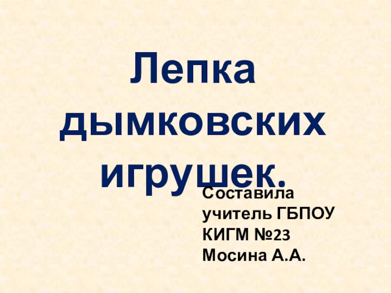 Лепка дымковских игрушек. Составила учитель ГБПОУ КИГМ №23 Мосина А.А.