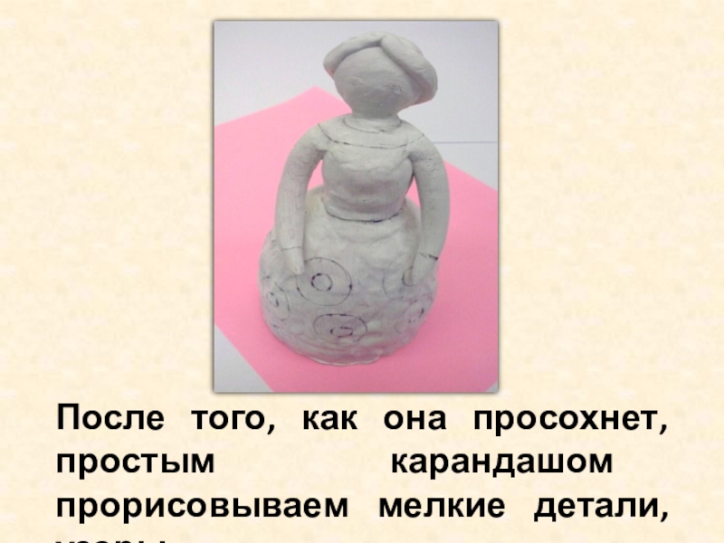 Слайд 8После того, как она просохнет, простым карандашом прорисовываем мелкие детали, узоры.