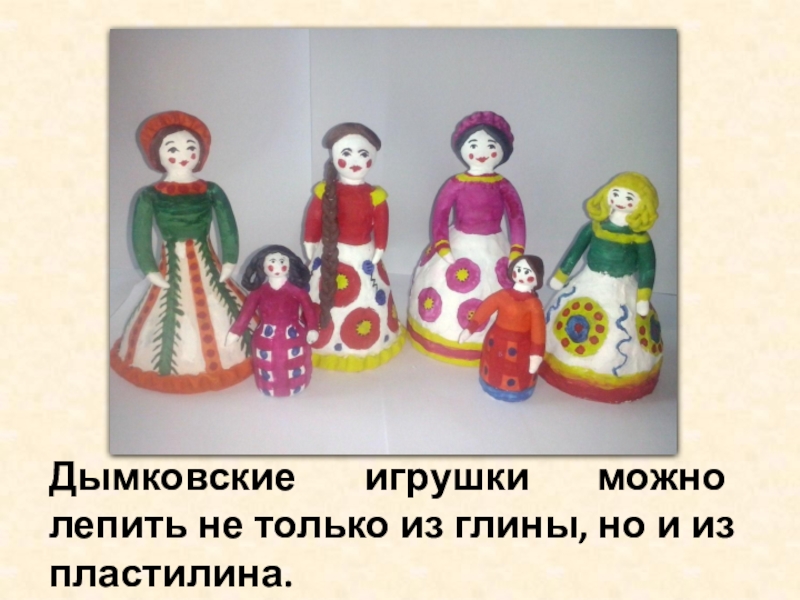 Слайд 2Дымковские игрушки можно лепить не только из глины, но и из