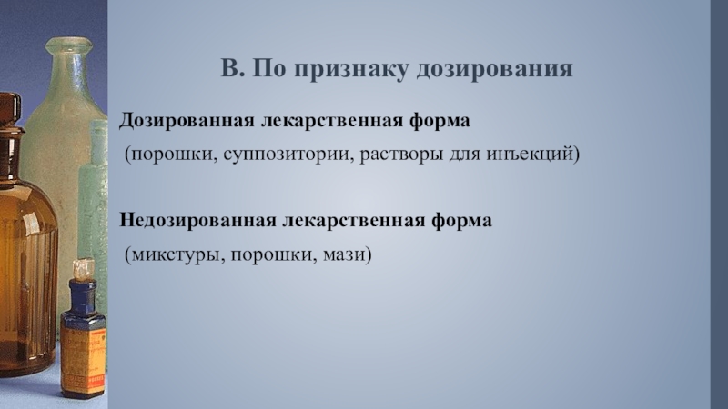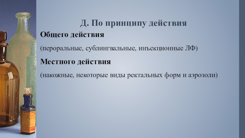 Слайд 23Б. Классификация, основанная на способе применения лекарственных форм