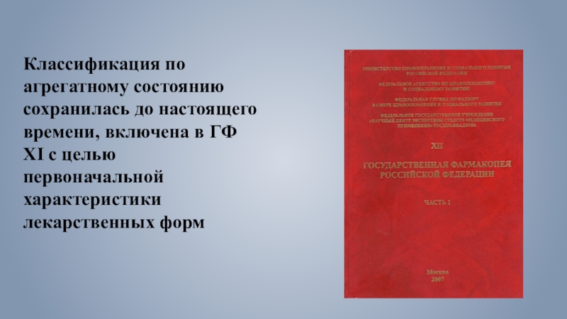 Слайд 22Классификация по агрегатному состоянию сохранилась до настоящего времени, включена в ГФ