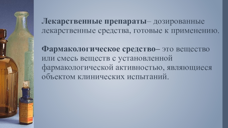 Слайд 13Лекарственные препараты– дозированные лекарственные средства, готовые к применению.