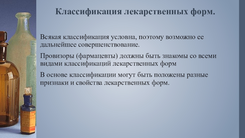 (фармацевты) должны быть знакомы со всеми видами классификаций лекарственных форм