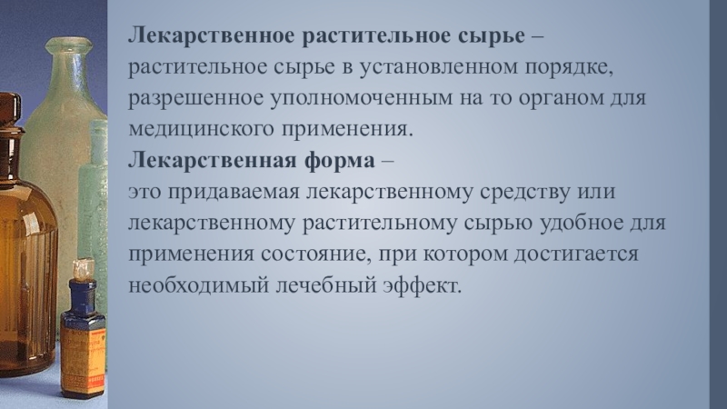 это придаваемая лекарственному средству или лекарственному растительному сырью удобное для применения состояние, при котором достигается необходимый лечебный эффект.
