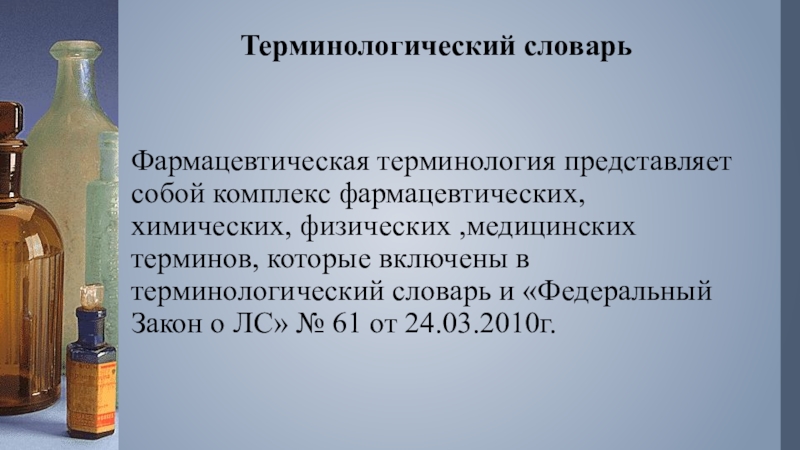 которые включены в терминологический словарь и «Федеральный Закон о ЛС» № 61 от 24.03.2010г.