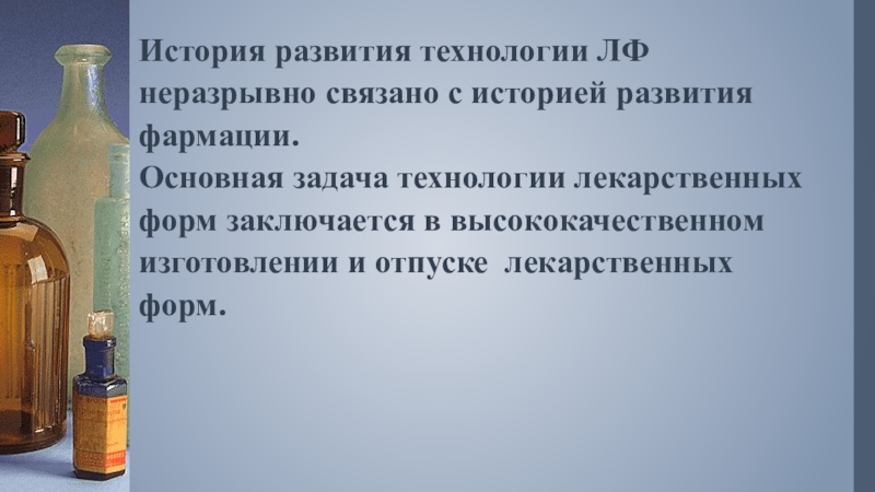 История развития технологии ЛФ неразрывно связано с историей развития фармации.
