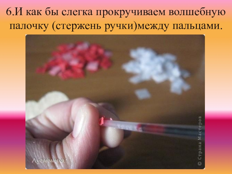 6.И как бы слегка прокручиваем волшебную палочку (стержень ручки)между пальцами.