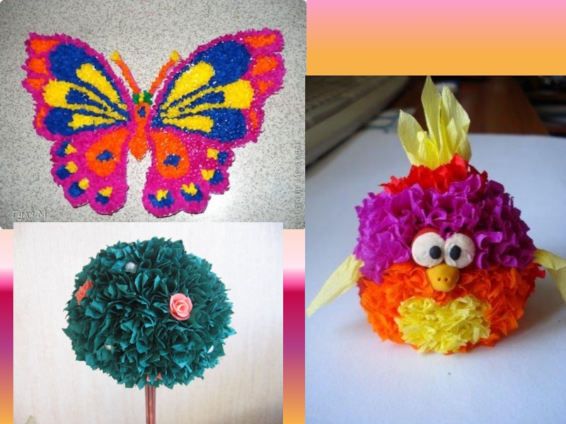 Для работы понадобятся: гофрированная бумага, ножницы, пластилин, волшебные палочки (стержень от ручки), картон, формочки и ваша фантазия!